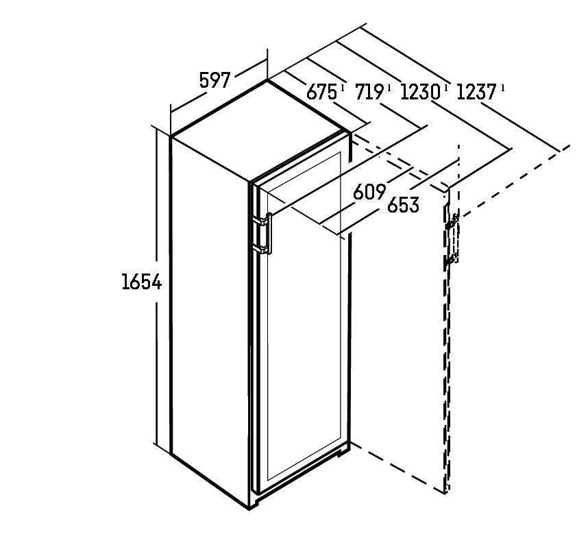 - Външни размери: височина / ширина / дълбочина: 165,4 / 59,7 / 67,5 см
