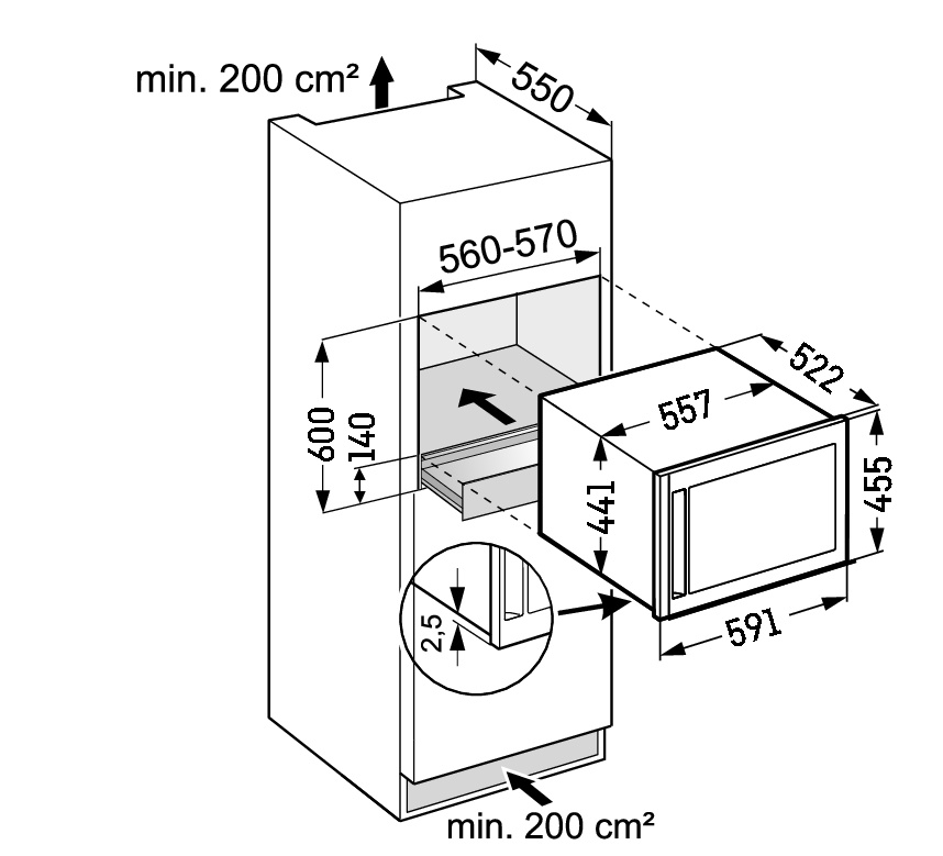 | Размери на нишата височина/широчина/дълбочина: 45 / 56 / 55,0 см |