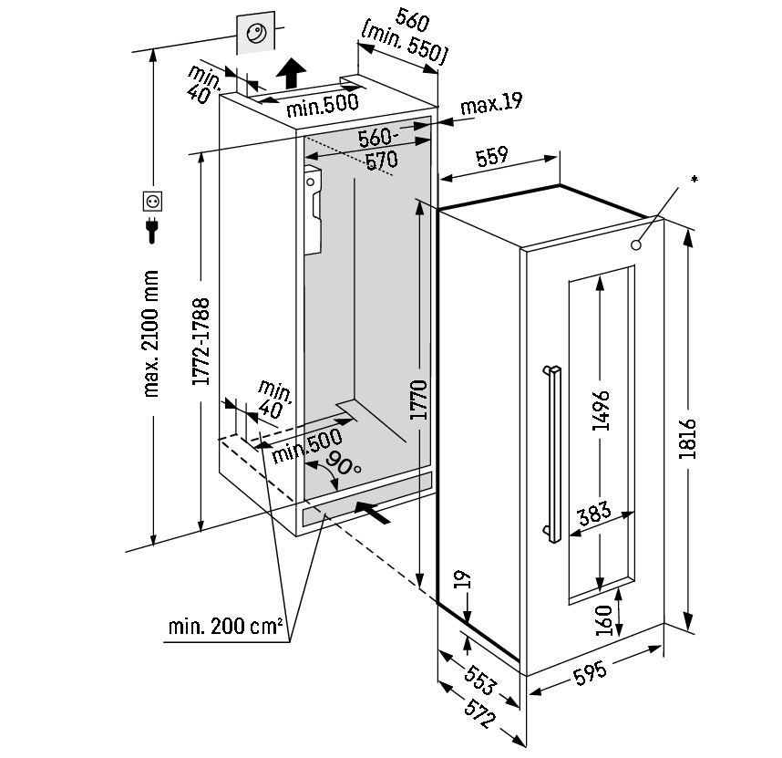 | Размери на нишата височина/широчина/дълбочина: 177 / 55,7 / 55,3 см |