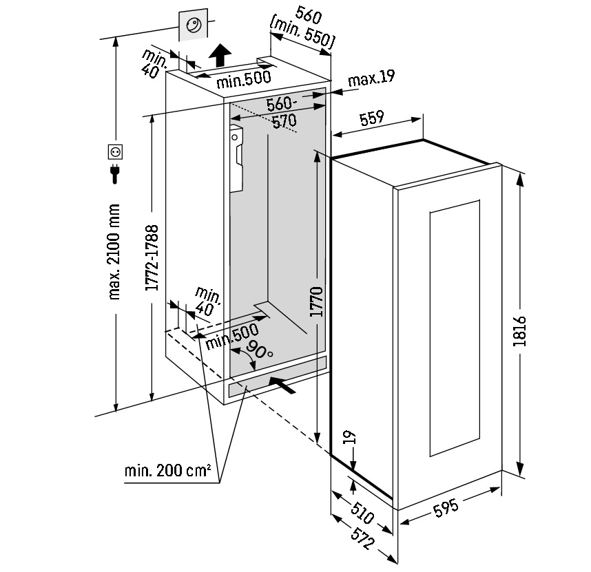 | Размери на нишата височина/широчина/дълбочина: 177,2 - 178 / 56 - 57 / 55,0 см |