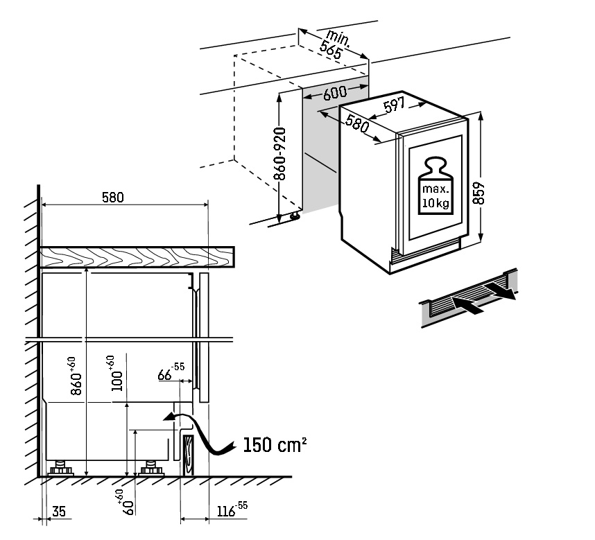 | Размери на нишата височина/широчина/дълбочина: 85,9 / 59,7 / 57,9 см |
